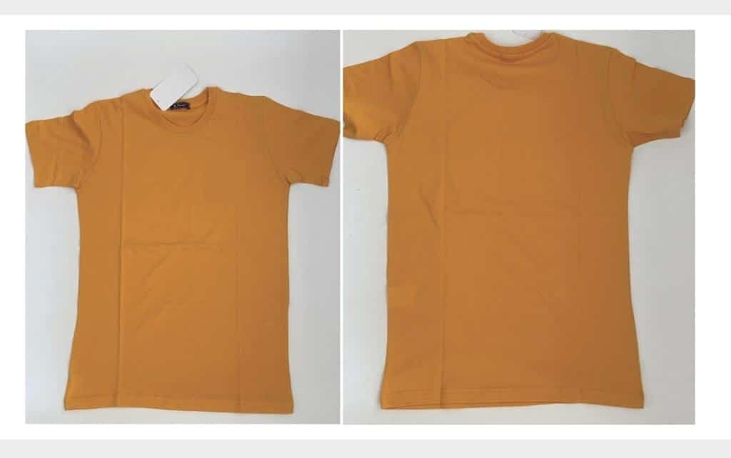 Yazlık Tişört: Hardal sarısı, düz sıfır yaka, kısa kollu penye